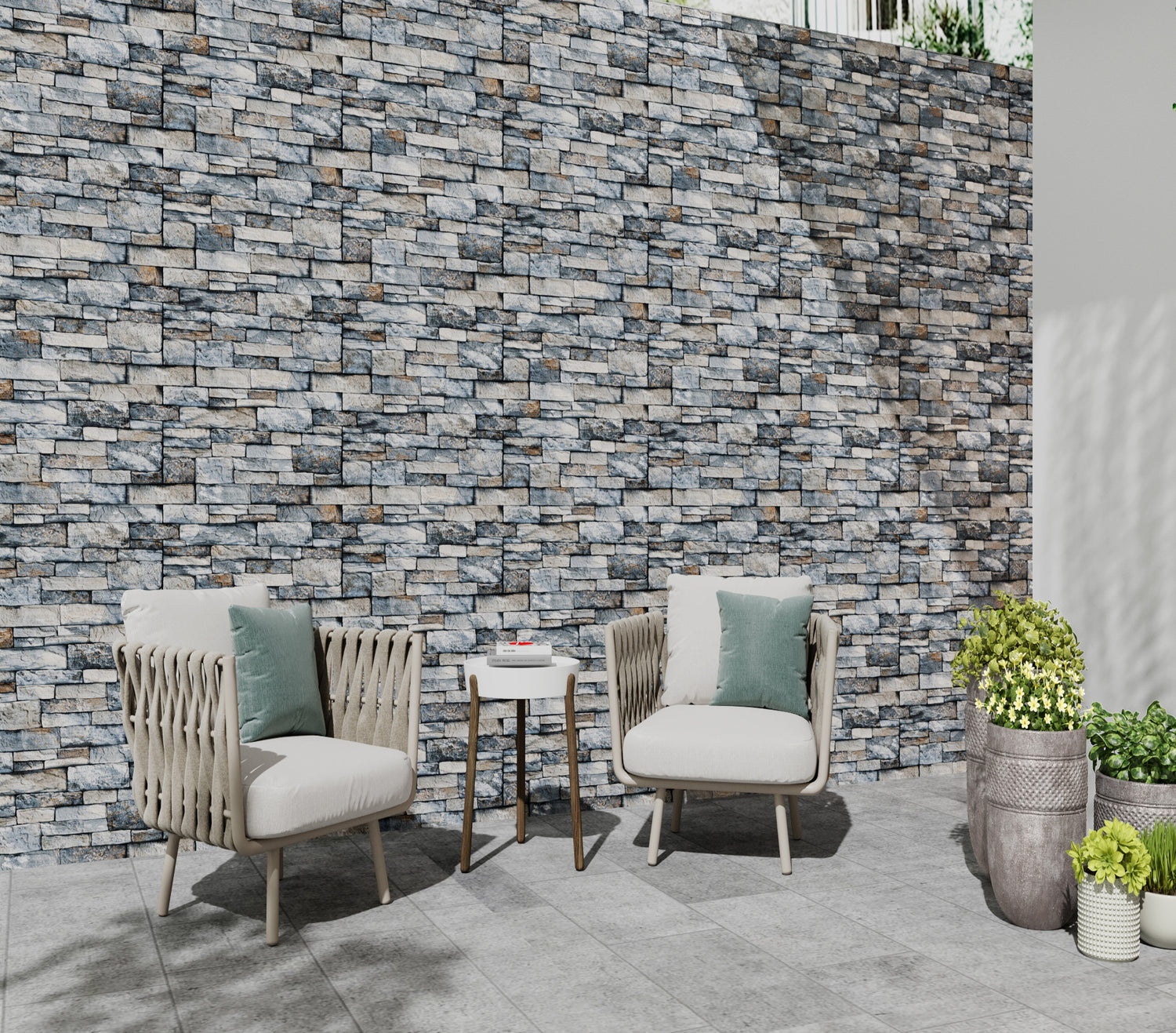 Fabriqué en grès cérame, le modèle 7403 est un revêtement mural haute performance, parfaitement résistant au gel, aux UV et à l'humidité. Qu'il soit utilisé pour sublimer une façade extérieure, entourer un coin spa ou créer un mur de caractère dans un salon moderne, il garantit un cachet authentique sans les contraintes de pose et d'entretien de la pierre véritable.