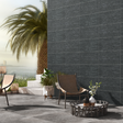 Sa finition mate associée à son relief strié crée un jeu de lumière subtil et graphique, idéal pour dynamiser les surfaces planes avec sophistication. Ce modèle est particulièrement prisé pour créer des murs d'accentuation modernes, offrant un contraste saisissant avec des matériaux plus clairs ou des éléments de décoration boisés.