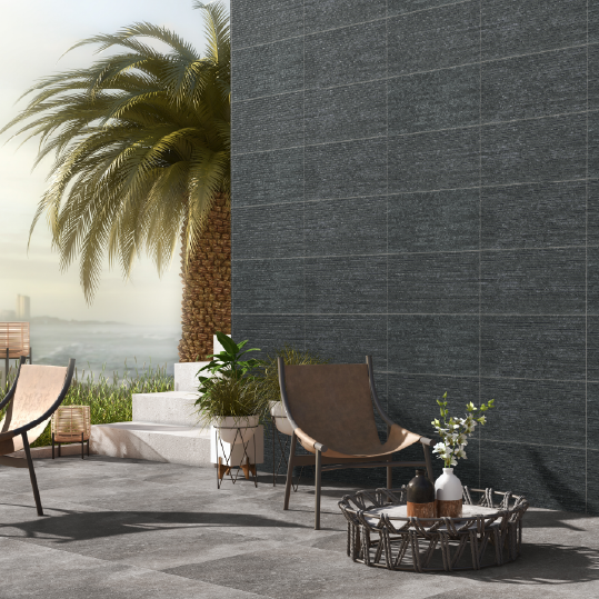 Le carrelage effet pierre de parement 7451, au format 30×60 cm, offre une esthétique contemporaine et architecturale inspirée des fines strates de l'ardoise naturelle. Son design se caractérise par un effet parement de pierre composé d'une succession de lignes horizontales délicatement texturées, déclinées dans un gris anthracite profond et élégant, apportant une intensité minérale unique à vos murs.