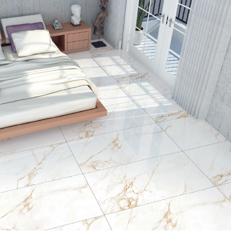 Carrelage effet marbre brillant - Satvario Crema - 60x120cm