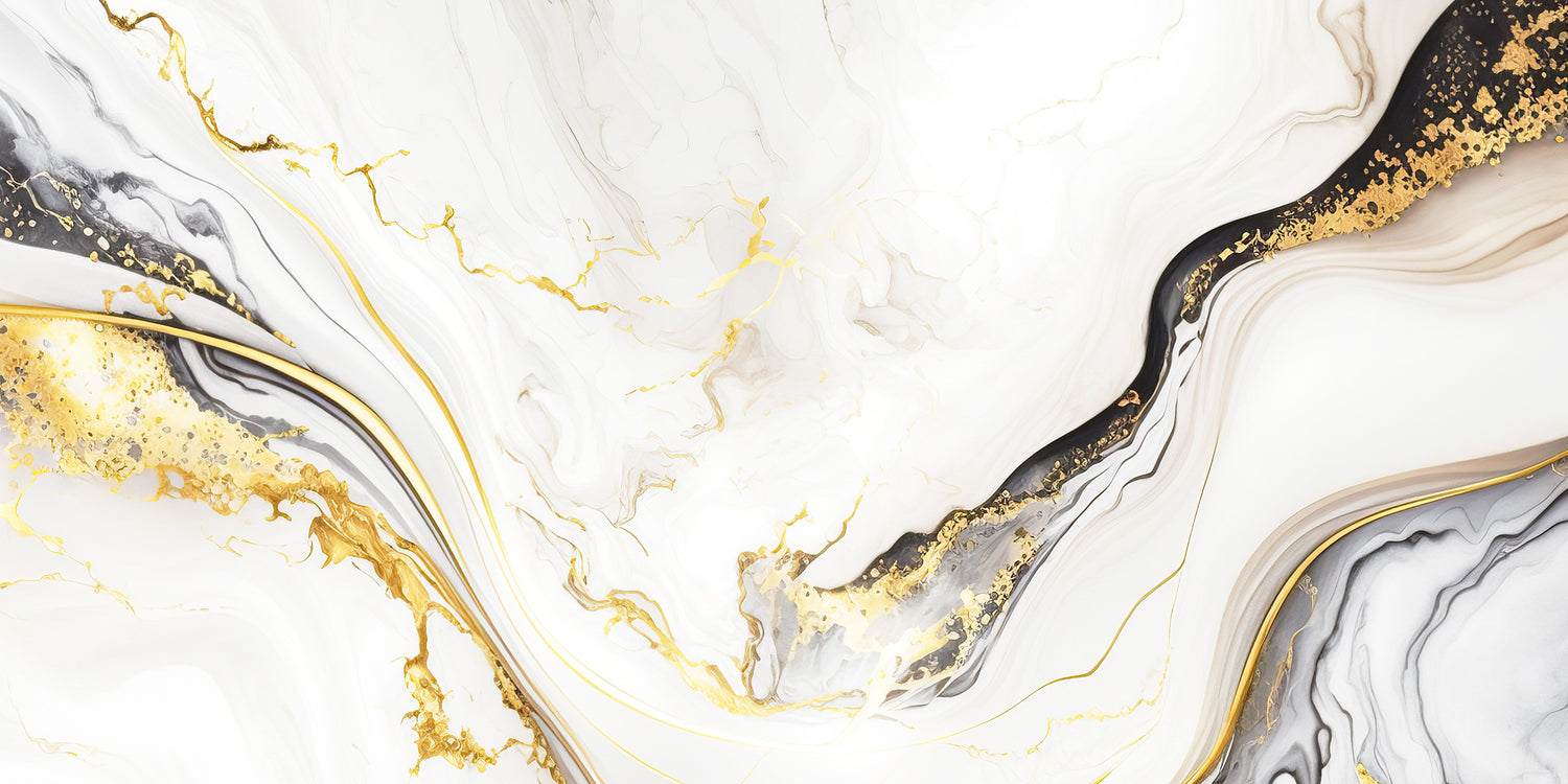 Le carrelage Flock White, en format 60×120 cm, propose un effet marbre blanc au rendu très expressif, sublimé par une finition brillante qui accentue la profondeur des motifs. Ses veinures dorées et noires, nombreuses et marquées, créent un décor très chargé, au caractère affirmé et résolument décoratif.