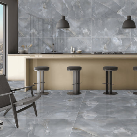 Prix habituel 28,80€ / BoîtePrix unitaire20,00€ /m²Carrelage effet marbre brillant - Onyx Sea Blue - 60x120cm