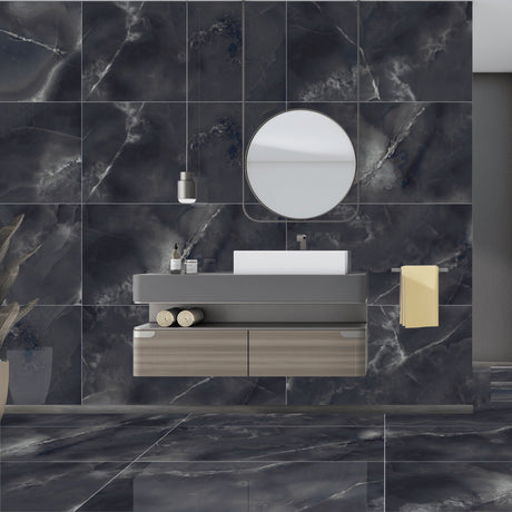 Prix habituel 28,80€ / BoîtePrix unitaire20,00€ /m²Carrelage effet marbre semi-brillant - Noir Infini Absolu - 60x120cm