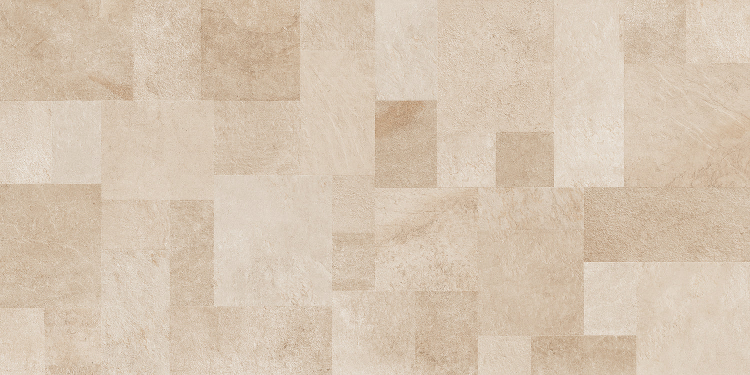 Ses nuances chaleureuses de beige et crème, allant du clair au plus soutenu, apportent douceur et élégance à vos espaces. Certains petits carreaux évoquent la texture naturelle de la pierre, créant un jeu de matières harmonieux et raffiné.