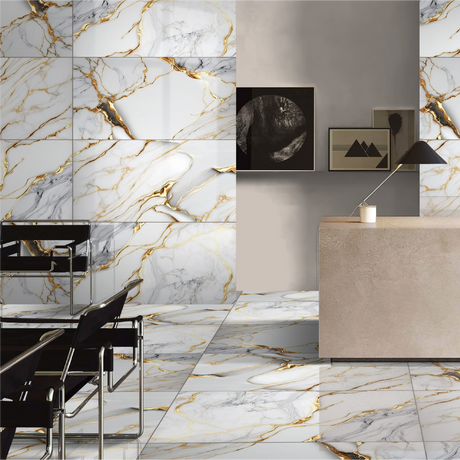 Carrelage effet marbre brillant - Jubelly Gold - 60x120cm