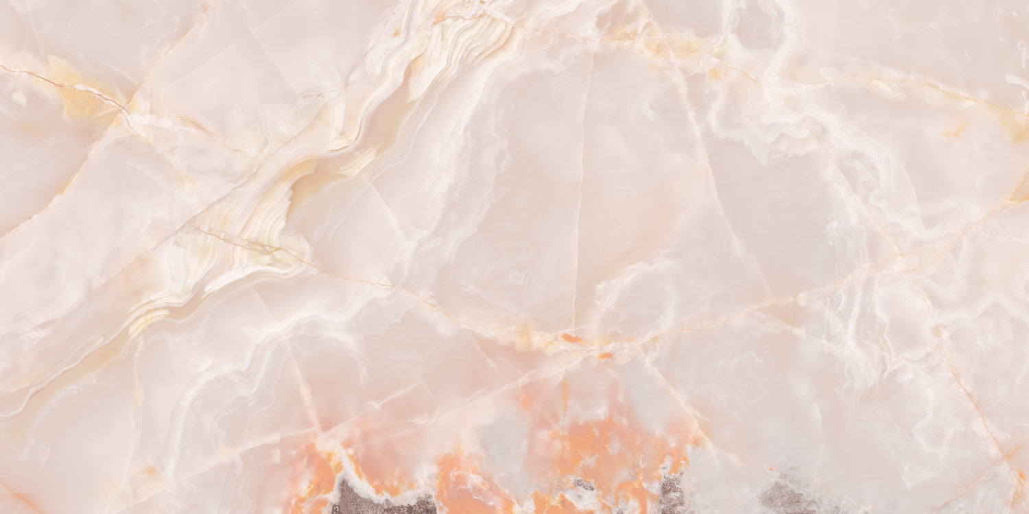 Le carrelage Bluette Onyx Red, en format 60×120 cm, s’inspire de l’onyx, une pierre naturelle précieuse réputée pour sa profondeur visuelle et ses effets cristallins. Malgré son nom, sa palette reste douce et élégante, mêlant des nuances beige et rose, soulignées par des veines orangées plus marquées.