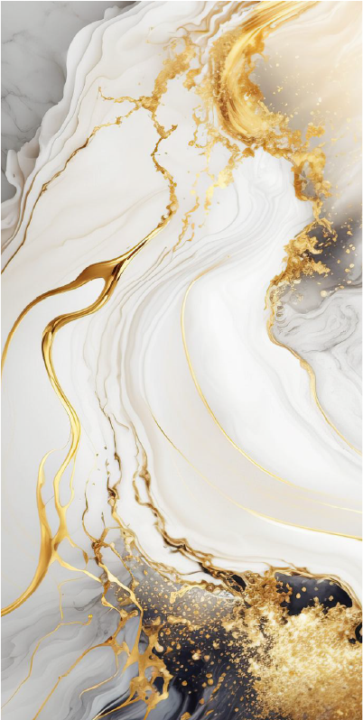 Le carrelage Bieon Lux, au format 60x120 cm, propose un effet marbre artistique inspiré de la technique du "Liquid Art". Son décor se caractérise par des volutes vaporeuses de blanc et de gris anthracite, rehaussées par des veines d'or éclatantes qui parcourent la surface.
